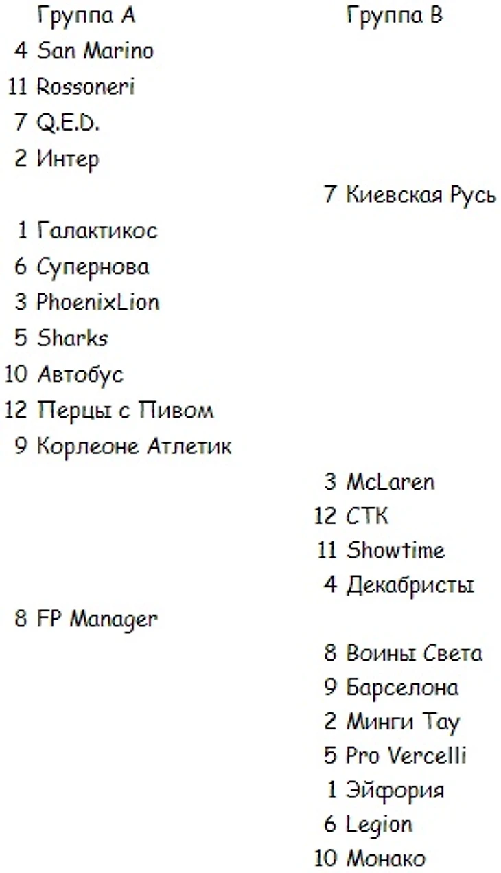 Дабы избежать казусов, подобных случившимся на жеребьёвке плей-офф Лиги Чемпионов (кстати, он уже стартовал!), жеребил я вручную, не прибегая к помощи компьютера.