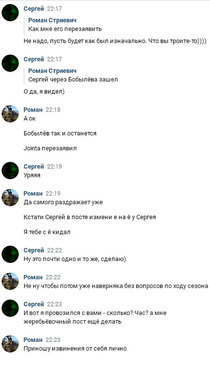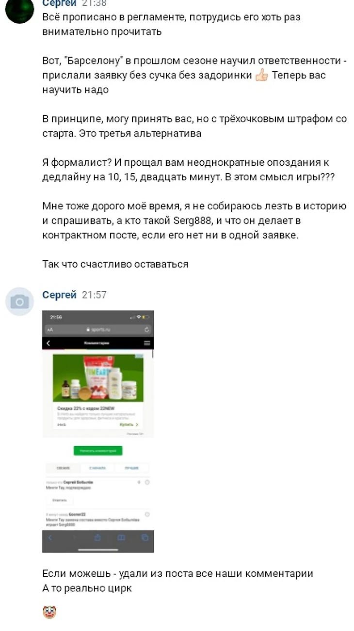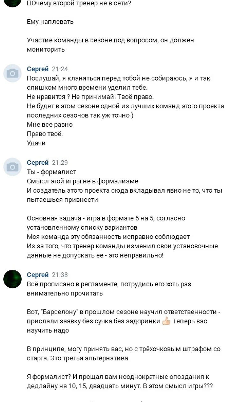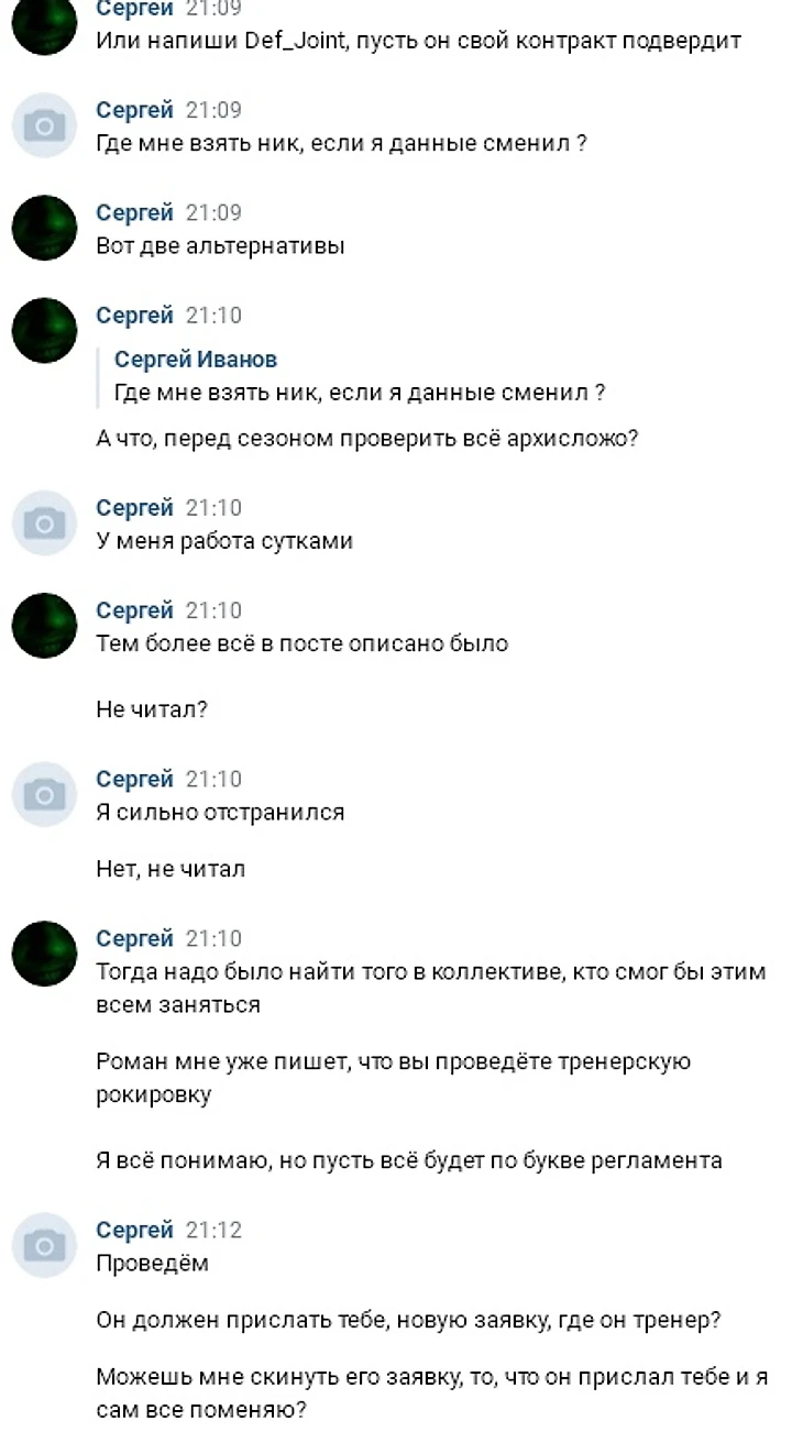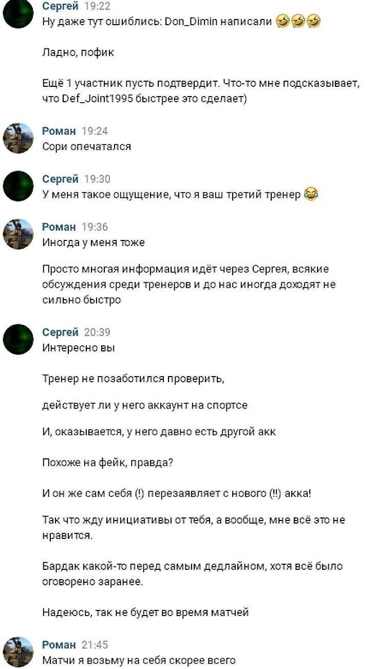 Вот, полюбуйтесь на нашу с их, с позволения сказать, тренером переписку: