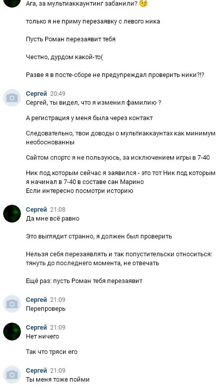 Я полез в историю, до 2015 года примерно. Как раз тогда вволю разгулялся Стас с его многочисленными командами, сплошь состоявшими из фейков. И он так же плевал и насмехался над правилами, как и подобает читеру.
