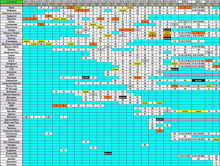 Накануне старта первенства представляю данные по всем проведённым чемпионатам на рублогах/спортсе (без вырезок по отдельным командам):