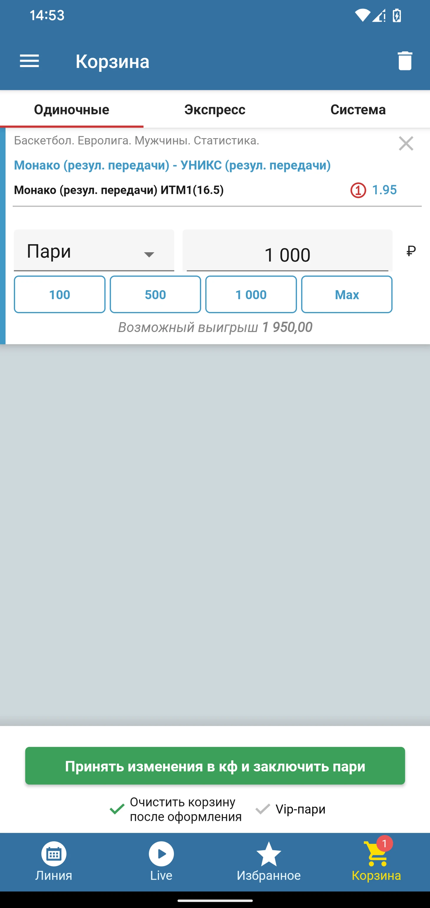 По сегодняшнему матчу Монако - Уникс скажу что игры они играют очень близкие , по силам тут действительно 50/50 . Важно на мой взгляд что Монако должны сегодня выкладываться на полную , у них уже 25 матчей в Евролиге а очков маловато . Однако шансы на плей-офф есть ещё и дома вот именно такие матчи надо забирать .Даже не смотря на это брать фору -2,5 или более не хочется так как ещё раз говорю играют очень близко и буквально каждый штраф и каждый бросок в самом конце может решать исход .