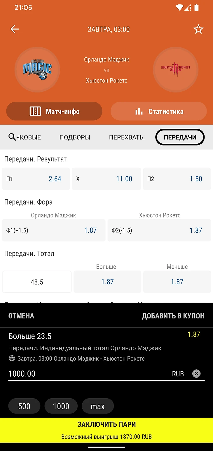 Орландо - Хьюстон , ожидаю Тб и Орландо дома неплохо обычно смотрятся . Кто победит опять же зависит сильно от реализации 50/50 . Выбрал передачи Орландо , минус только что Вагнера нет а так Орландо пасы стали делать весьма не дурно .