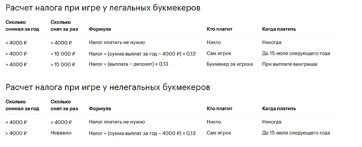Если букмекеры не делали вычет в 4000 Р, игрок сам вычитает их из суммы выигрышей до 15 000 Р, но только один раз за год.