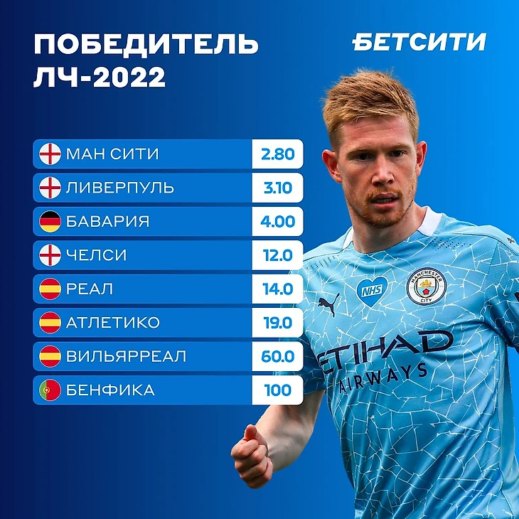 5 апреля 2022 года стартует 1/4 финала Лиги чемпионов. Осталось всего восемь претендентов на победу в главном еврокубковом турнире. Аналитики БЕТСИТИ оценили шансы каждого из них на итоговый успех.