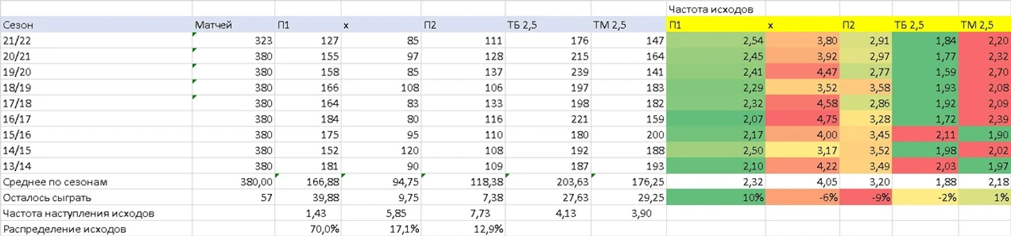 Конец сезона и это значит что можно смотреть примерную линию тренда на то, какие исходы будут случаться, чтобы выровнять средние значения по чемпионату.