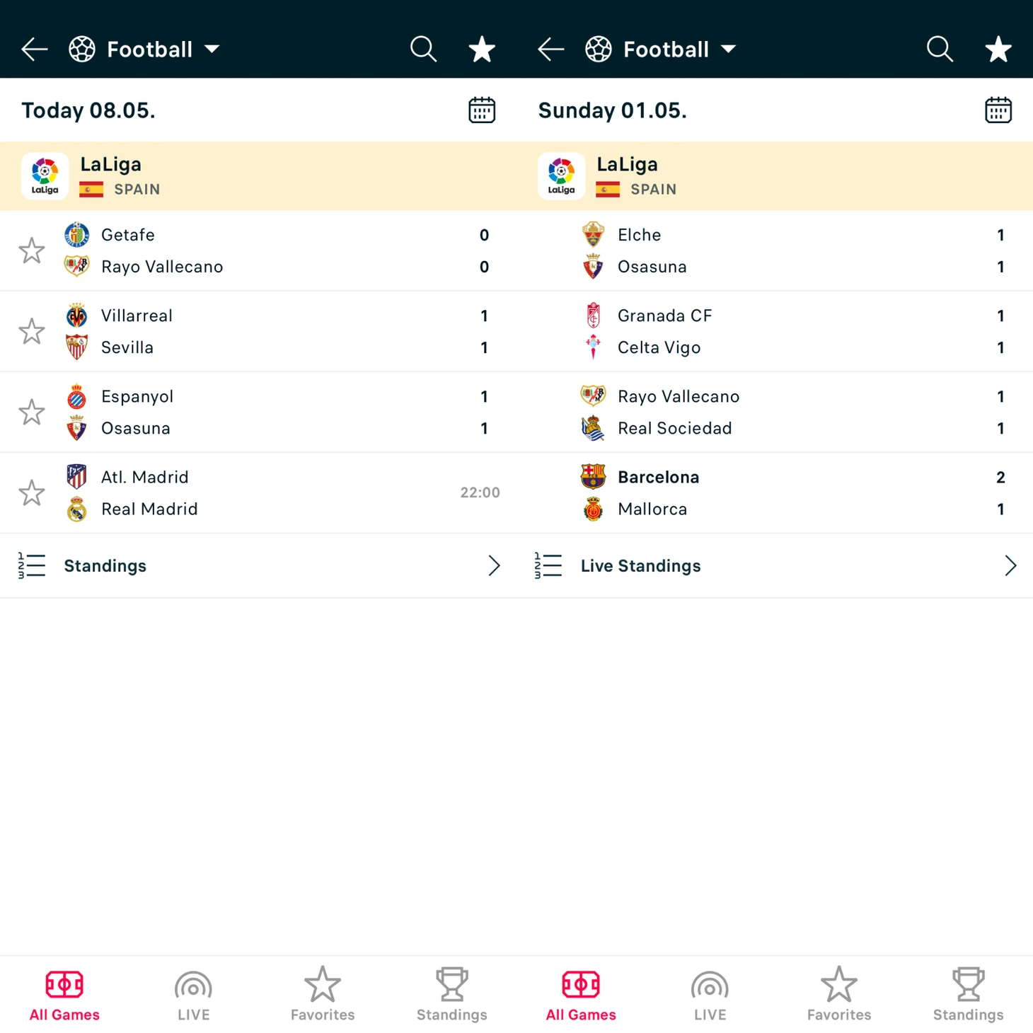 На фото воскресные результаты в Ла Лиге, разница в неделю! Три матча подряд на Х! Ну конечно же я поставлю на ставку (12) в матче Атлетико и Реала!
