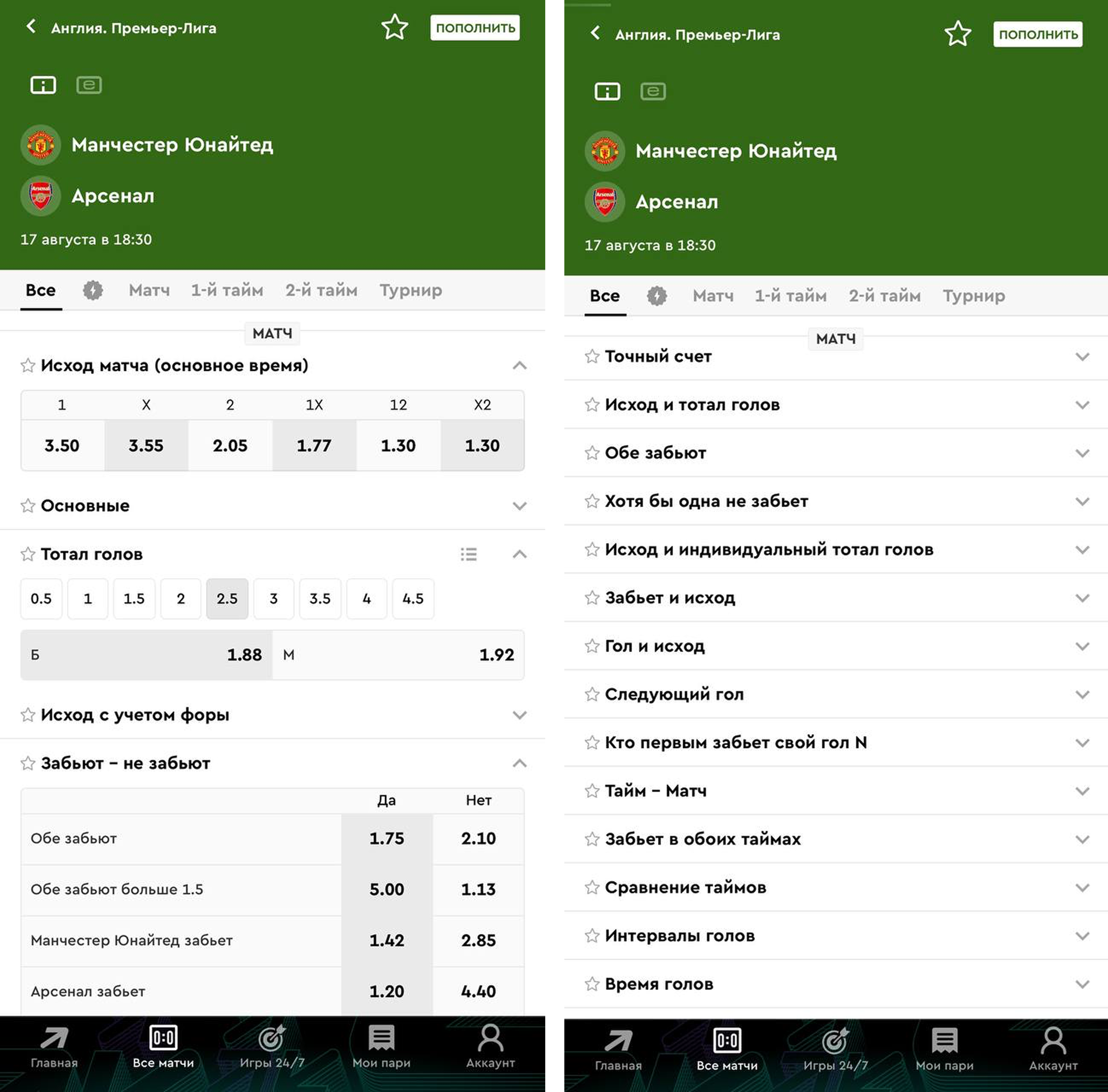 Пари на точный счет — игроку предлагается угадать результат матча во время ставки на исход. Такие маркеты имеют высокие коэффициенты, что связано со сложностью угадывания точного счета встречи.