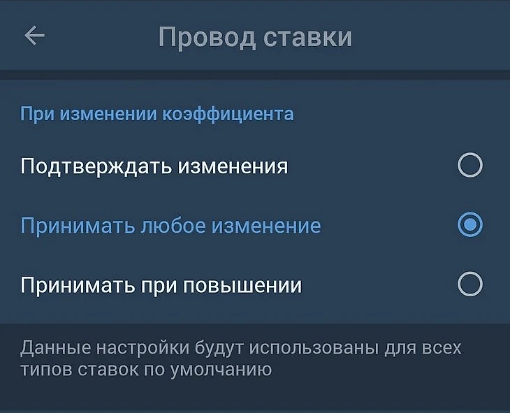 С принятием любых изменений я бы был поосторожнее. Коэффициент может в секунду упасть на несколько десятых (например, если одна из команд забила) и потерять свою привлекательность для игрока, а пари уже заключено.