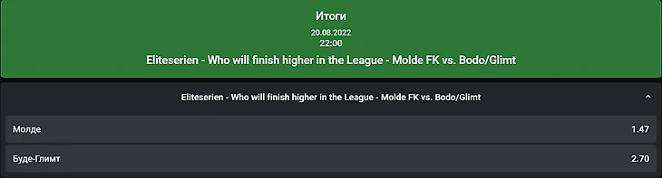 А вот в триумф «Буде» на национальной арене аналитики не верят – 2.70 (35%) на то, что клуб окажется выше «Мольде», лидирующего на данный момент в турнирной таблице. Отрыв в пять баллов на экваторе сезона, и это при условии, что «Буде» точно придется разрываться между еврокубками и чемпионатом – логика аналитиков очевидна.