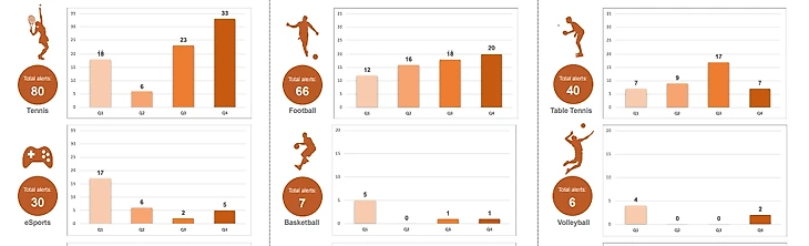 Теннис лидирует по количеству договорных матчей, а киберспорт становится всё популярнее у организаторов подобных схем