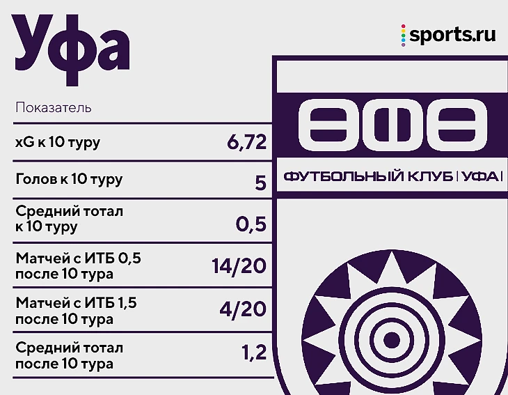 Тут обратная ситуация с «Рубином» – дайте «Уфе» еще дистанцию, и значения xG и индивидуального тотала стали бы еще ближе.