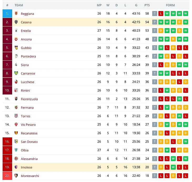 Имолезе проводит кошмарный сезон. Если вкратце, то у них всё плохо, и это главный претендент на досрочный вылет. У них были большие проблемы со сменой владельца клуба. Состав преимущественно из молодых и неопытных игроков. Абсолютно блеклая и невзрачная игра. На этой неделе они весьма неожиданно уволили своего, по сути, нового главного тренера, который успел побыть на своей должности всего 11 матчей. Кстати, это уже второе увольнение тренера в сезоне. На этот матч руководить командой будет тренер вратарей, у которого вообще нет опыта работы главным тренером.