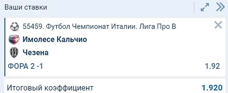 А в соперниках между прочим одна из сильнейших команд Серии С. С мощным составом, высоким бюджетом и амбициями выйти в Серию В. Чезена ещё и в прекрасной форме. У них три разгромных победы подряды с общей разницей 10:0. Чезена очень нуждается в победе и будет высоко мотивирована. Тем более данный матч носит статус дерби. Все гостевые билеты выкуплены. Как минимум 700 человек будут поддерживать Чезену в этой встрече на специальной гостевой трибуне, ещё какая-то часть их болельщиков будет на обычных местах. У Имолезе нет такой фанатской базы. Чезена, по сути, будет играть, как у себя дома. Всё это придаст дополнительной мотивации фавориту.