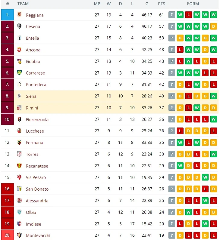 Сиена и так не очень много забивает, а тут она будет без своих наиболее опасных атакующих фигур. У Римини, кстати, полный порядок в обороне. Вскрыть их защиту очень сложно.