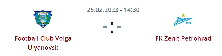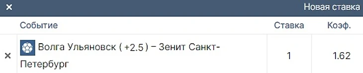 14:30 Волга Ульяновск - Зенит Ф1(+2,5) кф. 1.62 (фонбет)