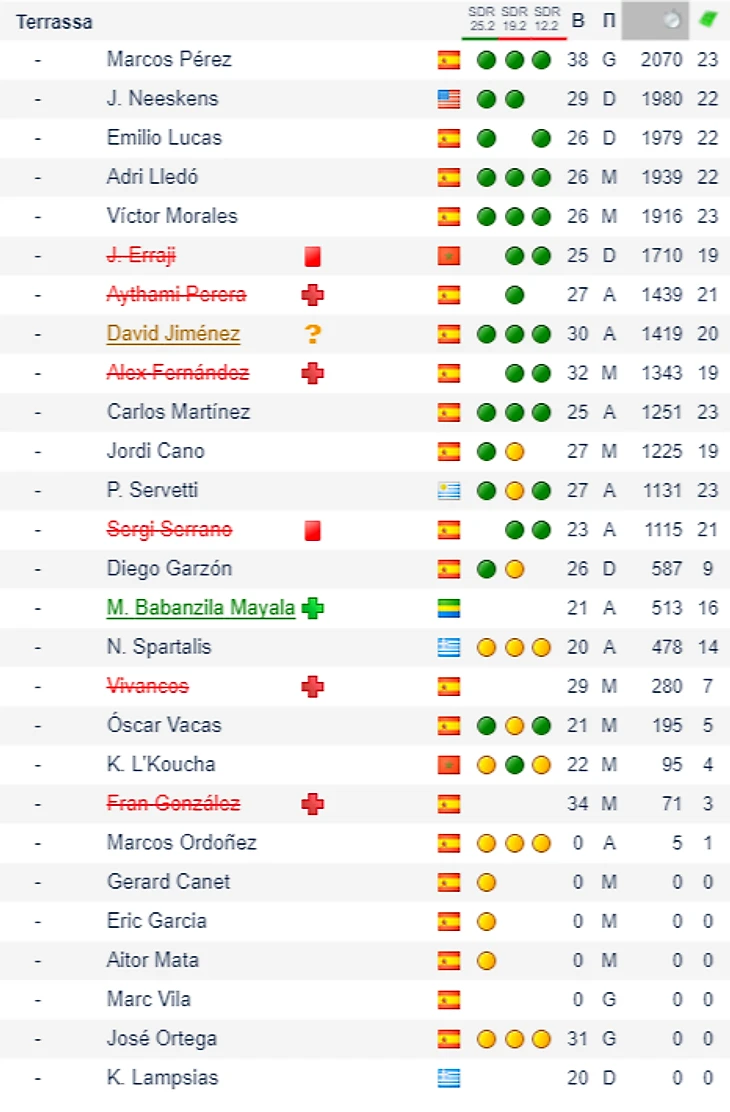 У Террассы пошло обилие травм с недавних пор. Кадровая ситуация в клубе выглядит следующим образом: