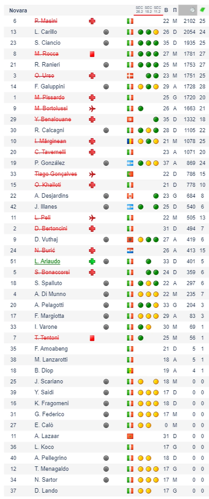 Обратите внимание на кадровую ситуацию в клубе Новара сегодня. Во многом из-за этого у них серия из 4 поражений подряд.