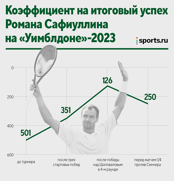 Сейчас ситуация иная: Сафиуллину осталось два шага до финала другого ТБШ. Хотя букмекеры по-прежнему не очень верят в его абсолютный успех на этом турнире, но стартовал россиянин при коэффициенте 501.00 на его победу. Сейчас – 250.00. А вот как все менялось