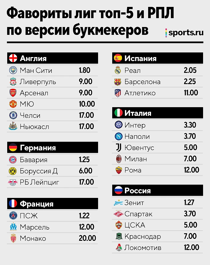 Поставить на чемпионство перед стартом сезона или в самом начале кажется, одно из самых очевидных решений. В каждой лиге есть один или два-три фаворита, дистанция турнира обычно дает выяснить, какая команда действительно лучше – влияния случайности минимум.