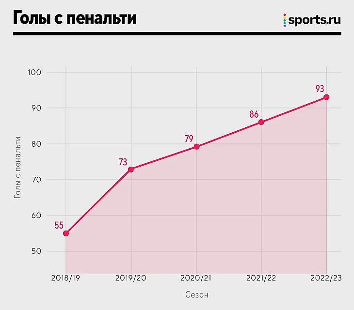 Плюс всплывает фактор ВАР, благодаря которому существенно увеличилось количество ударов с 11-метровых.
