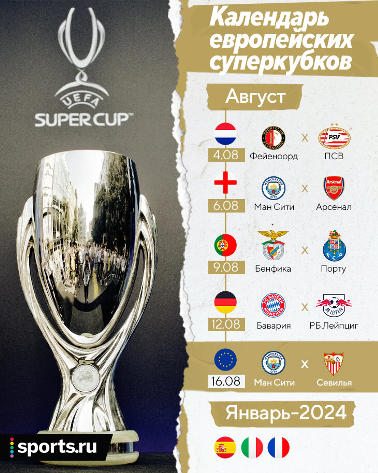 Пять европейских Суперкубков удобно распределены на ближайшие полторы недели, чтобы нам было удобнее подготовиться к сезону.