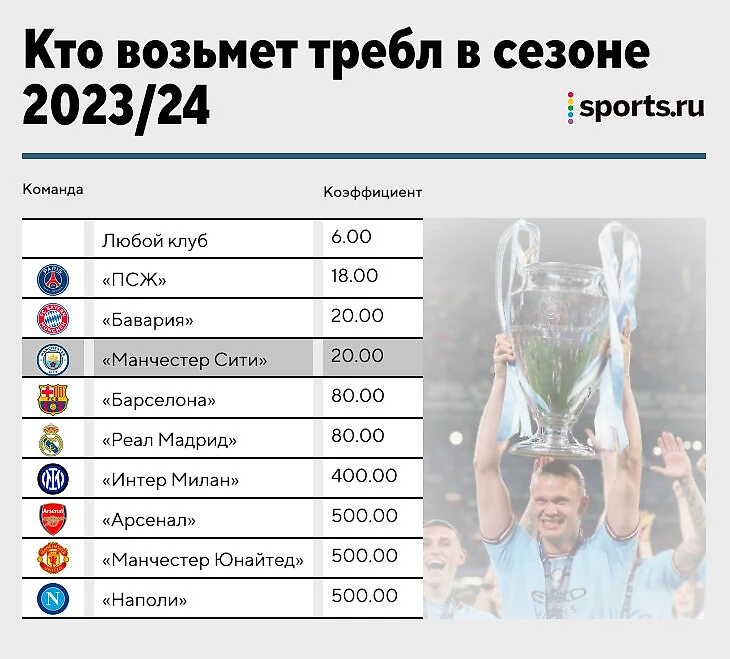 Суперкубок Англии выиграть не удалось, но это и не обязательная программа. Давайте оценим, какие у действующего победителя АПЛ, Кубка Англии и Лиги чемпионов шансы повторить достижение в сезоне-2023/24.