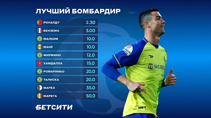 Также аналитики БЕТСИТИ подготовили линию на лучшего бомбардира чемпионата Саудовской Аравии.