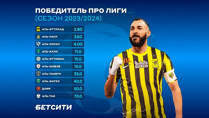 «Аль-Иттихад» выиграл последний розыгрыш Про-лиги, а летом подписал Бензема, Канте, Фабиньо и Жоту. «Тигры» — главные фавориты нового розыгрыша чемпионата Саудовской Аравии. Поставить на их победу можно за 2.80.
