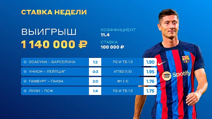 Ставки на «Лейпциг», «Гамбург» и «ПСЖ» зашли спокойно, а «Барса» заставила понервничать. Всё решил гол Левандовски с пенальти на 85-й минуте.