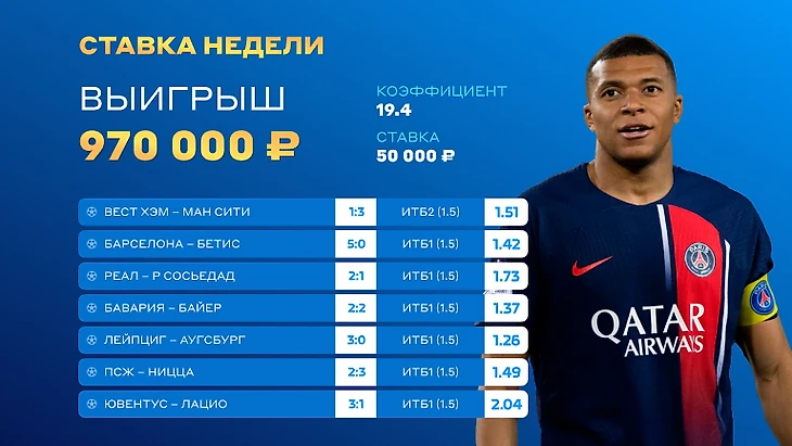 Мбаппе помог игроку БЕТСИТИ поднять почти миллион рублей!