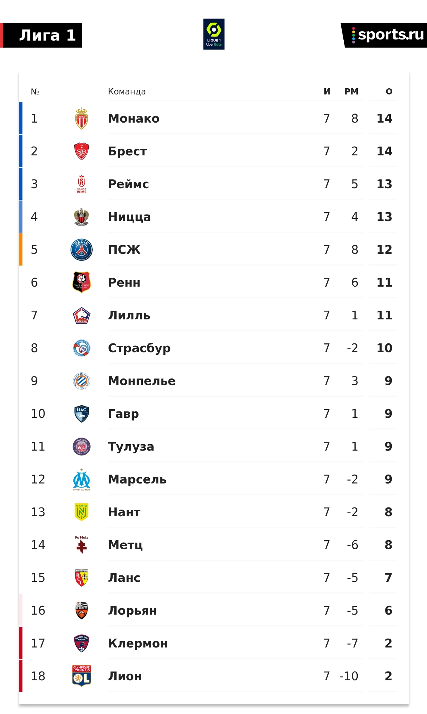 Что дальше? До конца октября предстоит сыграть в ЛЧ в гостях с «Ньюкаслом» и дома с «Миланом». А в чемпионате все соперники в этом месяце – из первой части турнирной таблицы: сначала выезд к «Ренну» (он пока никому не проиграл), потом домашний матч со «Страсбуром» (у него три победы в семи турах) и затем поездка к «Бресту» (сейчас вообще идет вторым, меньше него пропустила только «Ницца»).