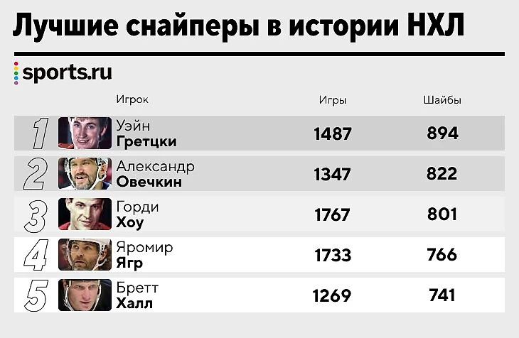 ● обошел Горди Хоу, который был вторым в истории с 801 шайбой, а всего Александр добрался до 822 голов в регулярках;