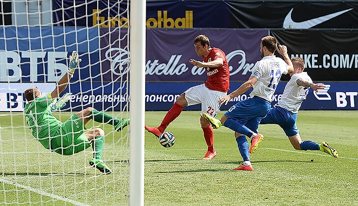 Но затем Федор Смолов переправил мяч в ворота рикошетом от Бителло, а Даниил Фомин – после сэйва Александра Максименко, в итоге – 2:0 перед перерывом.