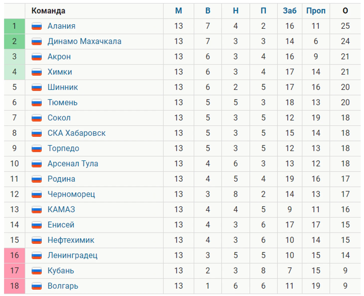 Что было за 13 туров – после пяти гордо лидировал «Акрон», «Химки» подтянулись после неудач на старте, «Торпедо» и «Родина» полетели вниз