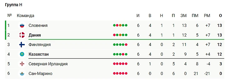 Сразу четыре команды претендуют на первое место, вы такое помните? У Словении и Дании по 13 очков, Финляндия и Казахстан с 12 баллами. И как тут быть, осталось четыре матча.