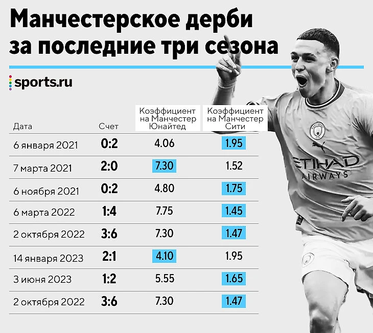 В эпоху Пепа Гвардиолы манчестерское дерби стало слишком предсказуемым с букмекерской точки зрения. За последние три сезона команды встретились восемь раз – ни в одном матче «Манчестер Юнайтед» не шел фаворитом.