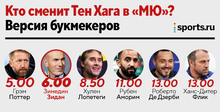 Про отставку голландца говорят с начала сезона, а список фаворитов на замену по версии букмекеров весьма обширный – от Хулена Лопетеги и Рубена Аморима до Грэма Поттера и Зинедина Зидана.