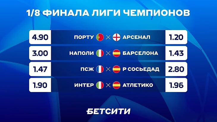 «Барса» – фаворит в паре с «Наполи», «Интер» – против «Атлетико». Кто выйдет в 1/4 ЛЧ?