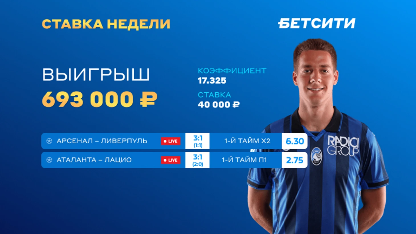 Игрок БЕТСИТИ поднял 693 000 рублей с двух матчей