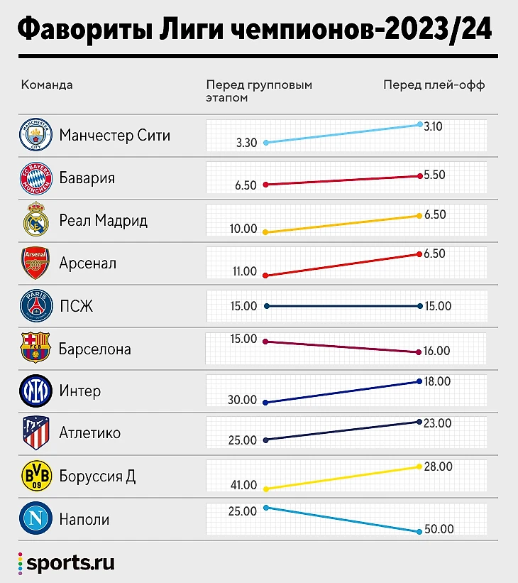 ● У «Боруссии» коэффициент заметно снизился – не в несколько раз, но все равно достойно. Конечно же, это произошло после победы в тяжелейшей группе – ведь немцы опередили «ПСЖ», «Милан» и «Ньюкасл».