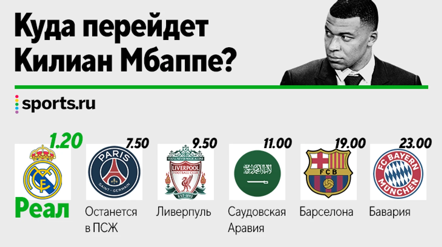 Килиан Мбаппе уходит из «ПСЖ», сегодня он объявил решение президенту Нассеру Аль-Хелайфи. Букмекеры молниеносно отреагировали на заявление, обновив линию на летний переход. Раздел «Ставки» на Sports.ru с апдейтом.