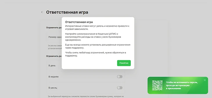 Раньше клиенты букмекерских компаний могли поставить самозапрет только через письменное заявление или звонком на горячую линию, теперь прямо на сайте ЦУПИСа есть вкладка «ответственная игра».