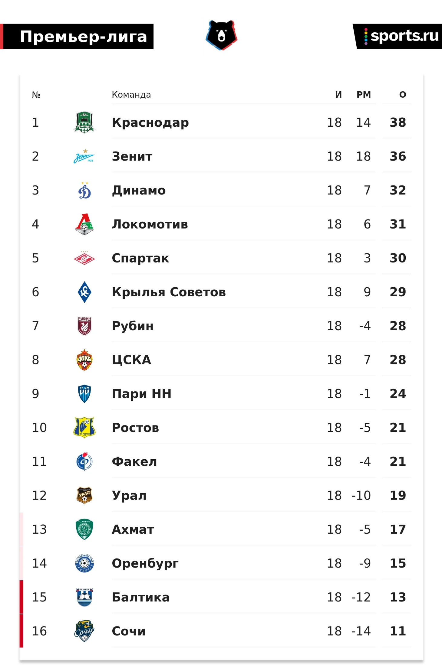 «Динамо» пока впереди, на очко отстает «Локомотив», еще на одно – «Спартак», на два – ЦСКА. Но играть осталось по 12 матчей, так что в плотном режиме все может поменяться.