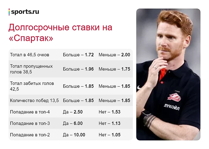 Раздел «Ставки» – о том, что ждет «Спартак», на что еще можно поставить в этом сезоне, и как менялся коэффициент на чемпионство.