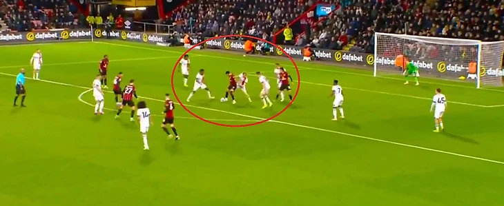 «Борнмут» расцвел сразу же после перерыва. На 50-й минуте Доминик Соланке, находясь спиной к воротам, шикарно прокинул мяч пяткой, развернулся и точно пробил. Как в таком окружении можно было забить? Но 15-й гол в сезоне все-таки влетел.