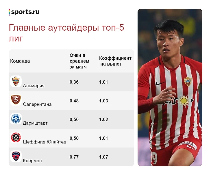 ● До сегодняшнего матча «Альмерия» была близка к антирекорду Европы по очкам. Даже «Шеффилд», ставки на вылет из АПЛ которого некоторые британские букмекеры уже рассчитали, набирает по 0,5 очка в среднем за матч.