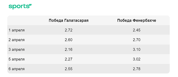 Изначально в декабре, когда открывалась линия на Суперкубок, небольшим фаворитом считался «Галатасарай» (на уровне 2.37), но коэффициенты «Фенербахче» были близкими (около 2.78).