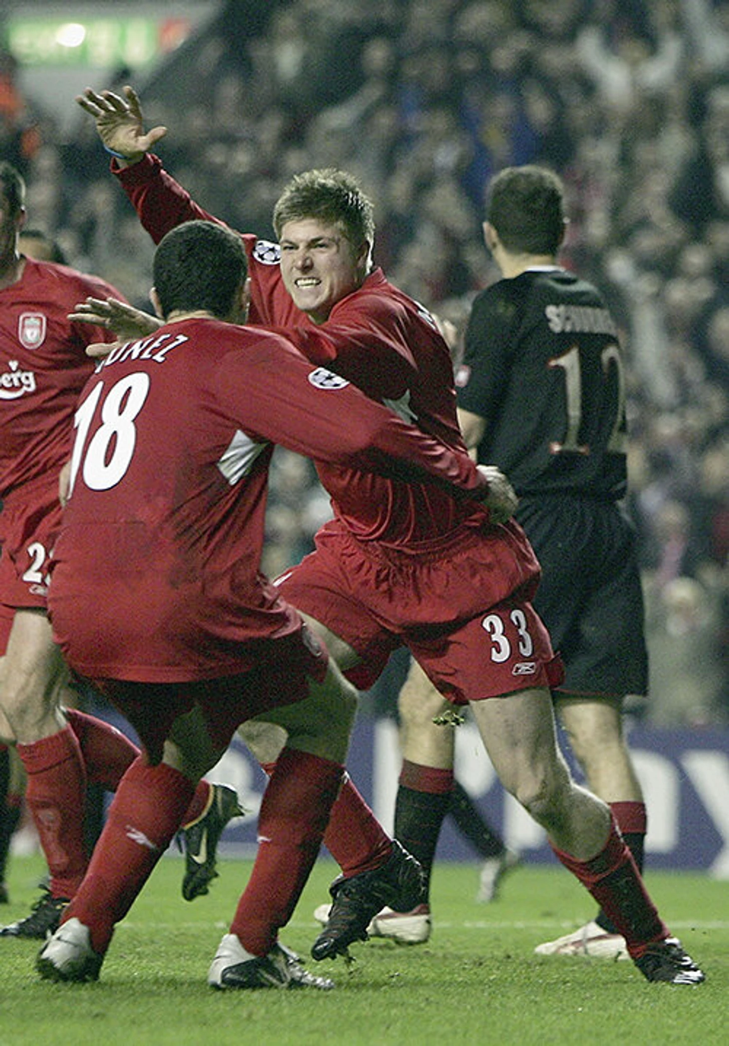 Рафаэль Бенитес, видимо, уже готовился к Стамбулу – второй тайм стал культовым для болельщиков красных. На замену выскочили Нил Меллор и Флоран Синама-Поньоль: первый выдал десятидневку жизни – до этого помог разорвать «Арсенал», ну а второй потом заезжал в «Ростов». Как раз эти ребята и забили, но 2:1 все равно не хватало. А на последней минуте Меллор скинул мяч на дугу у штрафной – а там был Стивен Джеррард. Шансов у Никополидиса просто не было: 3:1 и плей-офф для «Ливерпуля».