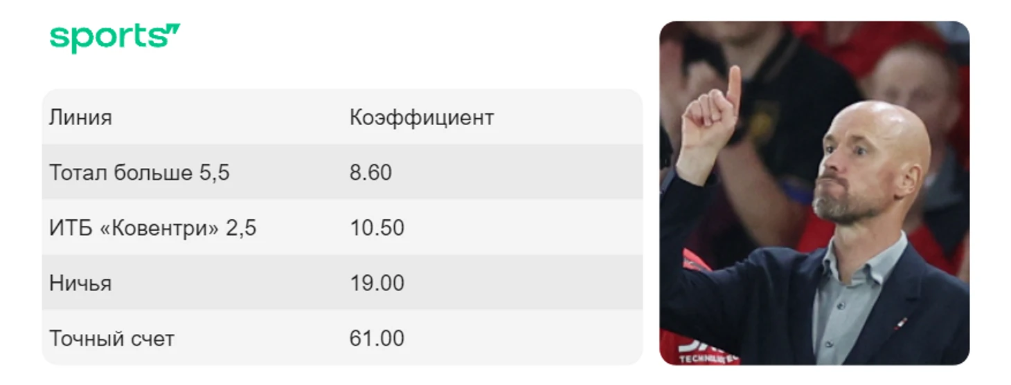 Никогда еще Тен Хаг не был так близко к провалу. «Манчестер Юнайтед» вышел в финал Кубка Англии по пенальти, ведя 3:0 с «Ковентри» и пропустив 3 гола подряд. Второй год подряд им играть с «Сити». Результат – ошеломительный, кто мог поверить в то, что «Ковентри» не только доиграет до пенальти, но и забьет четвертый гол на 121-й минуте, который в итоге отменили.