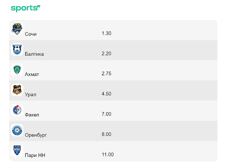 Что говорят букмекеры? Они не слишком сомневаются в вылете «Сочи», как им кажется, компанию ему составит «Балтика». Так выглядят коэффициенты на вылет из РПЛ: